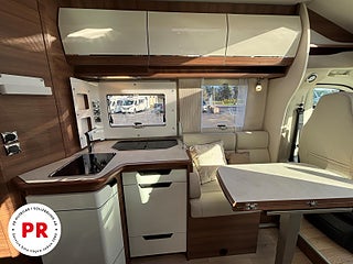 Modellår: 2023, Karosstyp: Halvintegrerad, Värmesystem: Truma - luftburen fläktvärme, Centrallås bil- och bodelsdörrar, Truma - luftburen fläktvärme, Klimatanläggning - bildel, Krocksensor för gasol under färd, Stort kylskåp med separat frys, Fönster med mörkläggning/myggnät, Färskvattentank - frysskyddad, Multimediaspelare med Backkamera, Punkteringsset - Fix n Go, Lastluckor - dubbla till garage, Lastutrymme - stort garage, Täthetsgaranti - från tillverkare, Servicebok