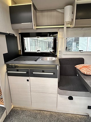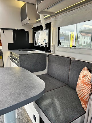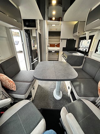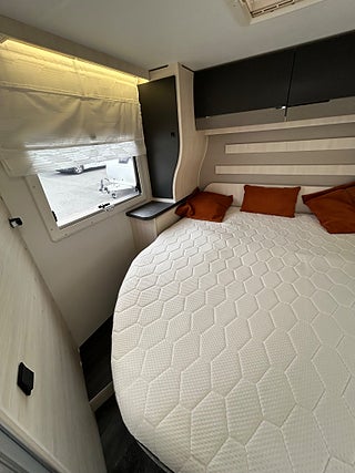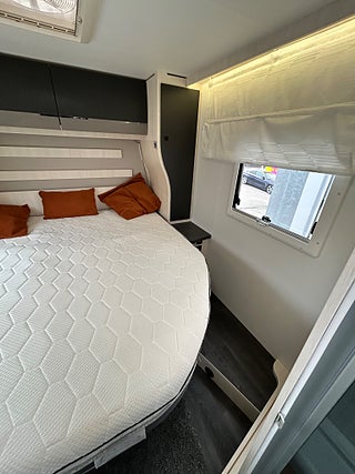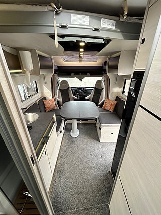 Chausson 788 TITANIUM PREMIUM bara namnet klingar fullutrustad husbil. Stor face to face dinette som faktist är bäddbr även om det finns en el dropdown ovanför dinetten, härligt kök i mitten med spis, varmt och kallt rinnande vatten samt en stor kyl med frys, längre bak i bilen har man separat dusch och kassett toa samt längst bak ett härligt "master" sovrum med en stor queen bädd ovanför garage/ lastutrymme.