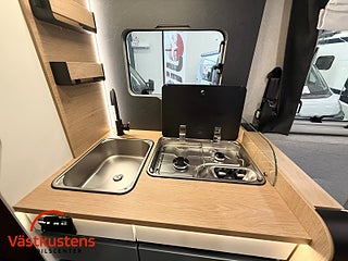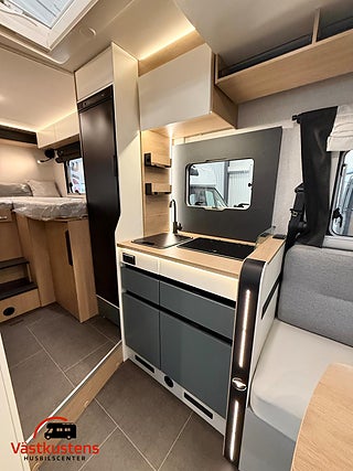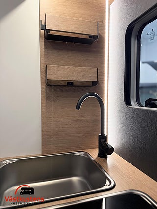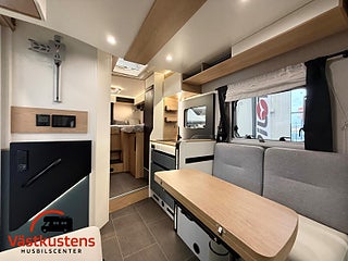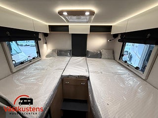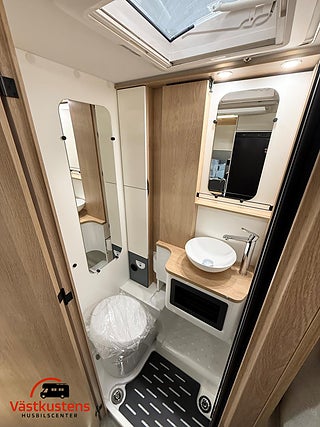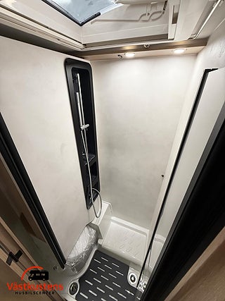 Husbilens värmesystem består av Trumas populära D6E - en värmepanna som drivs av diesel och el. Vinteranpassad med isolerad spillvattentank.