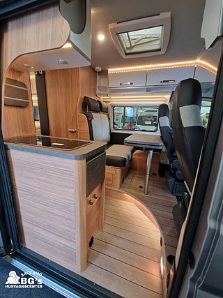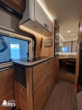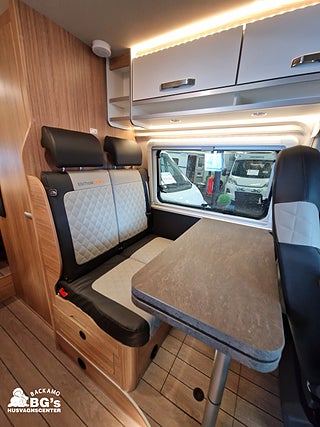 Airbag förare & passagerare, Mörkläggningsgardiner (Remis), ?Autonom körning ? Nivå 2?-paket, Lackering Metallic: Artense Grey, Truma DuoControl CS med gasfilter, Isofix system standardsittbänk, Förarhus med fasta hyllor (som i panoramafönster varianten)