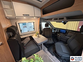 Värmesystem Truma luftburen värme med elpatron, 8-växlad automatisk växellåda, Ratt i läder med styrning för radio, Mörkläggningsgardin fram- och sidofönster, Vindrutetorkare med regnsensor, Parkeringshjälp extra bak, Elektrisk parkeringsbroms, Strålkastare med fast kurvljus, Radioförberedd inklusive 2 högtalare i förarhus, Extra högtalare i vardagsrummet (2 st), Digital 8" cockpit med integrerat 5G-modem, Förberedelse för dragkrok, ISOFIX-system för barnstol (2 lägen möjliga), Energieffektivt kompressorkylskåp 82 ltr. (inkl. 10 ltr. frysfack), Värmare TRUMA Combi 4 D diesel, Nätverksanslutet elektroniksystem med central kontrollpanel med display för batteriets status / färskvatten- och spillvattentank / strömanslutning, TRUMA iNetX Kontrollpanel, Isolerad avloppstank uppvärmningsbar, Laddbooster för bodelsbatteri. Denna Ford är en verkligt skön körupplevelse!! utöver det vanliga!