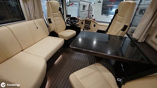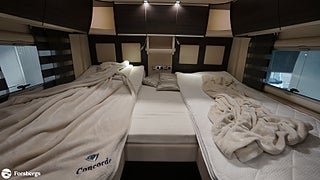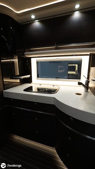 Avtagbar Concorde-ratt i läder, 5.5M Markis Elektrisk med ledbelysning, Elektriskt solskydd för vindruta, Instrumentbräda klädd i Bicolor pärlemor / Terra, Barversion med 3e bältad enkelsits, Kylskåp 190L med kombinationsugn inkl grillfunktion, Backkamera med dubbla linser, Navigationssystem med lastbilsprogramvara, Ljudsystem med 3-vägshögtalare, Läderklädsel "Pärlemor" inkl färgmatchade gardiner, Smart-Control för Aldepannan, Tertec Tv/Internetmast 3-5G, Laddningspaket för bodelsbatterier, 2x 200Ah Lithiumbatterier, Bluemarine UV Vattenrening, Utdragbara lådor i garage samt lucka vänster om bodelsdörr