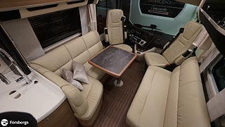 Concorde Charisma 860 LI kombinerar en lyxig exteriör med en skinninredning i vanilj och exklusivt "Ebano Silver"-träslag. Den stiliga salongen erbjuder en elegant loungekänsla, panorama-taklucka, mineralgranit-diskbänk och stämningsfull LED-belysning. Perfekt för den som söker ultimat komfort och sofistikation på vägen.