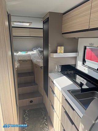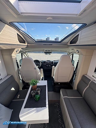 Modellår: 2026, Karosstyp: Halvintegrerad, Värmesystem: Truma - luftburen fläktvärme, Centrallås bil- och bodelsdörrar, Truma - luftburen fläktvärme, Krocksensor för gasol under färd, Multimediaspelare med Backkamera, Spillvattentank - frysskyddad, Färskvattentank - frysskyddad, Punkteringsset - Fix n Go, Fönster med mörkläggning/myggnät, Lastluckor - dubbla till garage, Lastutrymme - stort garage, Täthetsgaranti - från tillverkare, Extra bäddyna mellan långbäddar