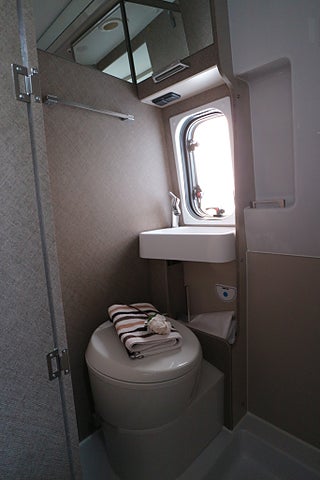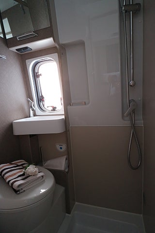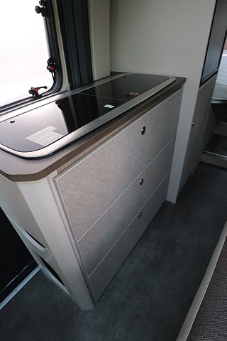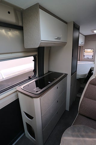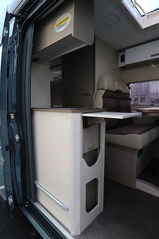 Rejäl köksbänk med flera förvaringsskåp & extra utvikbar köksskiva för mer plats. 2lågig gasolspis med autotändning. Utvikbar bordsskiva vid sittgruppen för mer bordsplats. Badrum med handfat & spoltoalett från Thetford med tillhörande toakassett. Omvandlas till en duschkabin om så önskas.