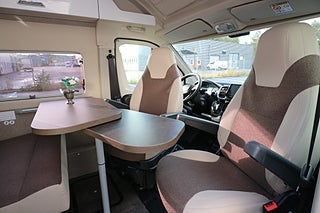 Förar/passagerardelen fram som bla bjuder på AC. Snurrbara kaptenstolar. Multimedia-anläggning från Pioneer 7" touchdisplay inkl backkamera. Farthållare - dubbla airbags -Antispinn -Elhissar. Färddator. Elspeglar. Fjärrstyrt C-lås. Mörkläggningsjalusier.