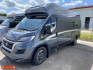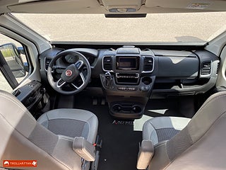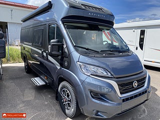 Klädsel: Grå Textilklädsel, Märke chassi: Fiat Ducato, Fritidscenter - Trygghetspaket, Plåtis designad för 2 personer, Toalett med separat duschkabin, Kompressorkyl och frysfack, Elektriskt utskjutbart fotsteg, Affinity Duo är framtagen för människor som sätter värde på självständighet. Människor som är skeptiska till campingplatser och sällan parkerar på ställplatser för husbilar. I husbilsvardagen finns det tre viktiga faktorer: bekväm säng, funktionellt kök och rymligt badrum. Därför är sängen i Affinity Duo bred, badrummet har separat dusch och köksdelen är stor nog för två personer att laga mat tillsammans.