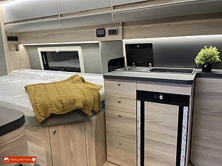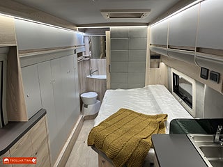 En plåtis designad för 2 personer, Toalett med separat duschkabin, Airbag förare & passagerare, Kompressorkyl och frysfack, Elektriskt utskjutbart fotsteg, Heldigital instrumentpanel, Läderratt och vxl-spaksknopp m.m