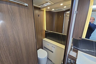 Design och funktioner: Toaletten har en modern design och är utrustad med en app som ger realtidsinformation om tankarnas nivåer och möjligheten att tömma tankarna utan att behöva flytta fordonet.