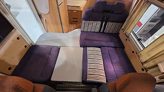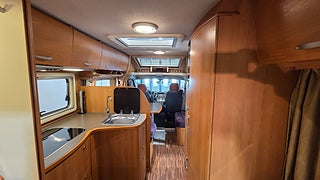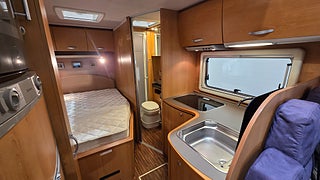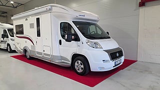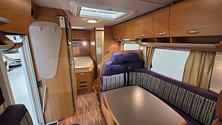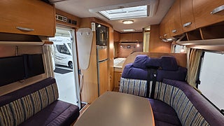 Fiat Eura Mobil 2007 4880mil Besiktigad gasoltestad samt fukttestad u.a En vinteranpassad husbil med dubbelgolv och vattenburen Alde värme vilket gör att man kan utan problem campa både vinter och sommar. Dubbelsäng bak (140x190) och en bäddbar sittgrupp i mitten av husbilen (210x140)