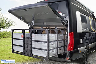 Mörkläggningsgardiner (Remis), Vinterisolerad avloppstank, Motoralternativ 170 hk/125 kW, endast tillsammans med automatväxellåda (Chassi-plus-paket), Elektrisk stängningshjälp skjutdörr, Utvändig färg obsidansvart metallic, inkl. lackerad karossförlängning, LED-ytterbelysning inkl. dropplist, Dometic S7P ramfönster passagerarsida vid bakre säng, Eluttagspaket: 3x USB-uttag/2x 230 V-uttag, Förberedelse solcellspaneler, Truma Combi 6 D+E inkl. höjdkit (diesel-/eldrift), London 25 ? tygkombination