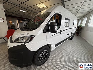 Hjuldrift: Framhjulsdrift, STEREO MED BACKKAMERA UTAN NAVIGATION, FRAGUS 5 ÅRS NYBILSGARANTI, LITHIUMPAKET 100 AH MED SOLCELL 200W MED SPEC. REGULATOR FÖR CBE, Värmesystem: Truma luftburen värme, Fiat Ducato MultiJet 140 (2, 2 l / 140 hk / 103 kW) - 3.499 kg tillåten totalvikt Automatväxellåda Combi 4E gas-Elvärmare Markis 16" alufälgar, fönster i badrum växelspaksknopp i läder, Remis mörkläggnings system, Taklucka Mini-Heki 40 x 40 cm i bak med myggnät och, Taklucka i badrum med integrerad myggnätrullgardinBakre förvaringsutrymme med 4 integrerade surrningsöglor Bakre säng med avtagbar sängbotten, madrass med räfflat tyg Ergonomiskt formade kuddar för ökad sittkomfort Ergonomiskt utformat kök med stor arbetsyta Garderob i sänglåda till vänster Multifunktionsskena på kökets baksida(för matchande tillbehör) Rymlig lådor med soft-close och push-lock i köksskåpet Svängbart badrum med trädörr, svängbar väggoch kassett-toalett Kompressorkylskåp 84 l inkl. frysfack 6, 1 l Kontrollpanel med indikering av alla fyllningsnivåer ochbatterikapacitet Vattentank 100 l, avloppsvattentank 90 l Förvaringsutrymme för gasflaskor med en fyllnadsvikt på 11 kg Belysning av bakre förvaringsutrymme 1x 230 V-uttag i köket, 1x dubbelt USB-uttag bak till höger? USB-uttag 10 års täthetsgarant 90 l bränsletank., Extrautrustning denna bil stereo med 10.1tums skärm med backkamera och stöd för Apple Carplay och Android., Solpanel 200W med 100Ah Lithiumbatteri