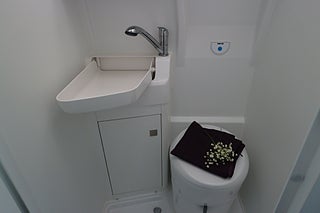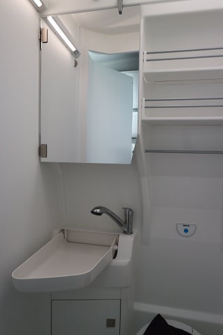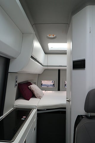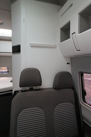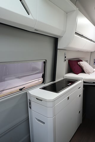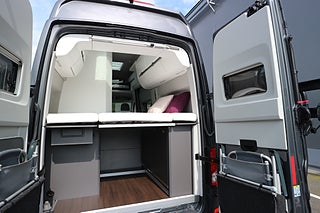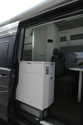 Kompressor kylskåp på 75L med frysfack. 2-lågig gasolspis med autotändning och 2 extra utvikbara bordskivor för mer plats. Stort badrum med spoltoalett från Thetford samt handfat och möjlighet till att göra om till duschkabin. Även utedusch bak finns monterat. Led-ytterbelysning. Helautomatisk eltrappa. Myggnätssektion till den stora skjutdörren.