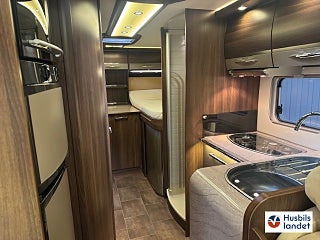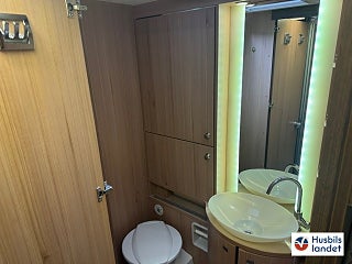 Mörkläggningsgardiner (Remis), Alde vatteburen värme: Detta är en åretruntbil klarar alla årstider, den har ett ett chassi från Al-ko vilket gör att du får ett dubbelgolv och en bättre köregenskaper, Elegance är också Bürstners "värsting" vilkt gör att allt är lite lyxigare, SOG ventilation på toalett