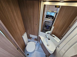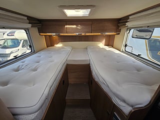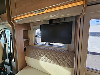 Nyinkommen Bürstner IXEO 728G med långbäddar och elektrisk nerfällbar taksäng i färdriktningen