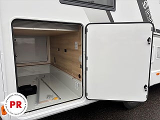 Modellår: 2025, Värmesystem: Truma - luftburen fläktvärme, Automatisk växellåda (8 vxl), Centrallås bil- och bodelsdörrar, Truma - luftburen fläktvärme, Klimatanläggning - bildel, Stort kylskåp med separat frys, Fönster med mörkläggning/myggnät, Färskvattentank - frysskyddad, Multimediaspelare med Backkamera, Punkteringsset - Fix n Go, Lastluckor - dubbla till garage, Lastutrymme - stort garage, Täthetsgaranti - från tillverkare, Servicebok