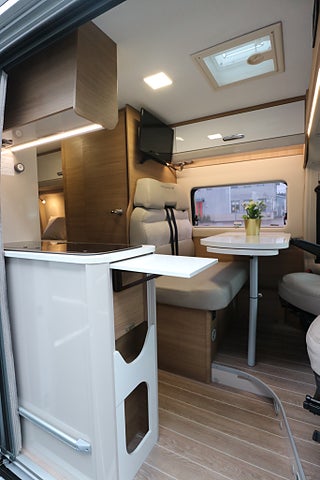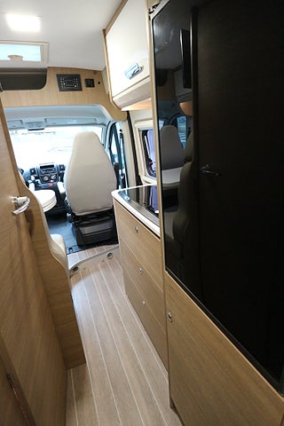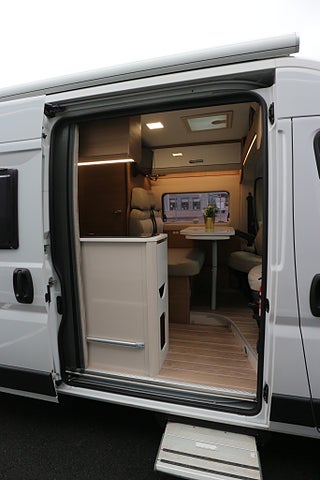 Många praktiska lösningar och mycket förvaringsutrymmen. Endast 5.99m lång gör att du kör den som vanlig personbil över broar och på färjor samt parkerar lätt å smidigt i parkeringsrutan. 2.05m bred och 2.62m hög. LED DRL-Ljus.