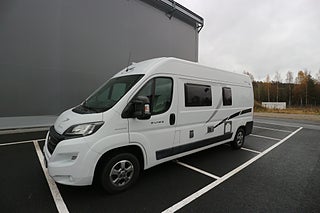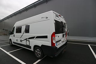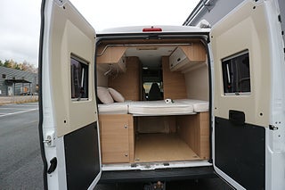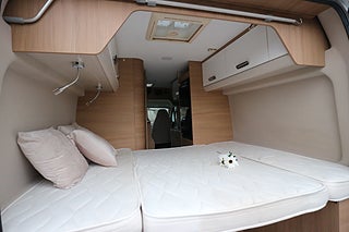 Körs även på vanligt B-kort oavsett när man tagit körkort då totalvikten ej överstiger 3500 kg. Breda sängar bak på 147cm där man får plats 2 personer. 4 bältade platser. Den ena sängskivan går enkelt att lyfta upp och man får på så sett ett rejält lastutrymme alt garage istället. malibu