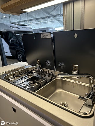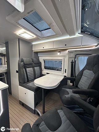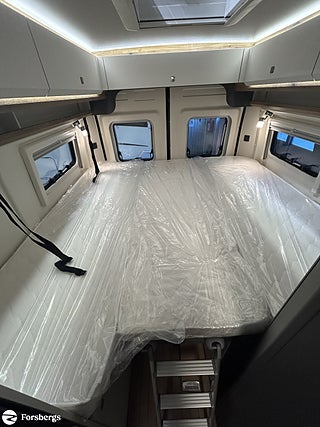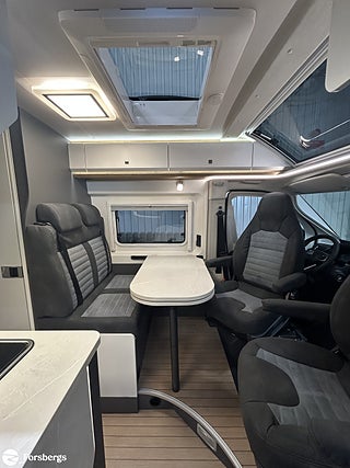Hjuldrift: Framhjulsdrift, Märke chassi: Fiat Ducato, Sverigepaket Prestige VAN. Motor 180 hk, uppvärmd/isolerad 90 liters gråvattentank, ramfönster inkl. fönster vid sängar, 180 HK Automat med start/stop-system och ECO-Pack, Bicolor lättmetallfälgar 16", Elstyrda och uppvärmda ytterbackspeglar, Paket ?Lounge? (inkl. elektroniskt reglerbar klimatanläggning med pollenfilter och induktiv laddningsfunktion för smartphone samt digital instrumentangivelse som 7" TFT-färgdisplay), Lackerade stötfångare inkl. svart Skid-Plate, Ratt och växelspaksknopp i läderutförande och instrumentbräda med Techno Trim, Paket Vision Level 2 (inkl. elektriskt infällbara ytterbackspeglar och parkeringssensorer samt döda vinkeln-assistent med sidoförflyttningsassistent), Hillholder och intelligent traktionskontroll, autom. bromssystem med fotgängardetektering, trötthetsvarnare och intelligenta hastighetsassistans, Post Collision Braking System, Farthållare inkl. adaptiv farthållare >30 km/h, Trailer Stability Assistent, Förar- och passagerarsäte klätt med samma material som vid sittgrupp, Panorama-takfönster ?Hobby TOP? (öppningsbart) med dubbelt glas och toning, USB-laddningsport (USB-A/USB-C), Mörkläggningssystem DOMETIC för vindruta samt sidorutor i förarhytt, Ramfönster (öppningsbara) med dubbelglas och toning samt mörkläggning och insektsnät, Takmarkis THULE-OMNISTOR i svart, Högeffektiv B6-isolering och XPS-skum, Takluckor DOMETIC-SEITZ Mini-Heki med mörkläggningsgardiner och insektsskyddsplissé, Utdragslåda för gasolflaskor - passar till 2 x 11 kg-flaskor, GRP-innergolv med XPS-isolering, Vattenavrinning över skjutdörr med LED-instegsbelysning, Surrningsöglor i förvaringsutrymmet, Tröskelfri övergång mellan förarhytt och bodel, Kylskåp THETFORD 90 liter kompressorteknik, Kombination med gasspis och diskho av rostfritt stål med 2 lågor och elektrisk tändning samt nedsänkbar armatur och tvådelad glaskåpa, Ribbottensystem GOODSIDE® fällbart inkl. kallskumsmadrasser i flera delar, Vridbar toalett från THETFORD, Öppningsbart fönster i badrummet, Frostskyddad Färskvattentank 95 L, Uppvärmd Gråvattentank 90 L, Gasolregulator med övertryckssäkring, Gasfördelare i mittre sittgruppen, Utvändigt uttag 12 V / 230 V inkl. SAT- och TV-anslutning, Bodelsbatteri Dual AGM 12V / 95Ah, Dubbel USB-laddningsport A/C (1x för bodel), Förberedelse för solpanel, Extrauttag (1 x 12 V/2 x 230 V/2 x Kombi USB A/C), Ledbelysning för bodelslamporna, LCD-manöverpanel TRUMA Combi CP Plus, Förberedelse för takmonterad luftkonditionering, Varmvattensförsörjning i kök och badrum, Styrning för intern teknik via Hobby 7" touchmanöverpanel och Bluetooth med app inkl. HOBBY CONNECT, 9" pekskärm inkl. Apple CarPlay/Android Auto och backkamera, TV-uttag inkl. 12 V / 230 V och antennuttag