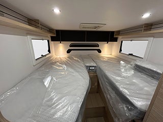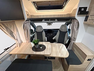 Lika kompakt och lättkörd som en van. men med mer inre utrymme och bättre isolering – S217 levererar båda delarna. Den har gott om förvaring. ett flexibelt badrum och två enkelsängar som kan omvandlas till en stor king size-dubbelsäng.