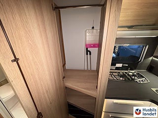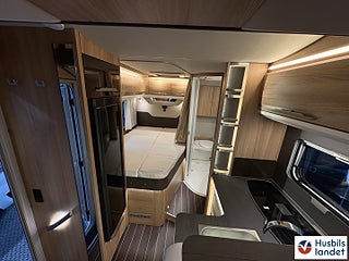 Värmesystem: Alde vattenburen värme, isolerad och uppvärmd gråvattentank, öppningsbara dubbelglas tonade rutor, luckor med soft close funktion, Rymlig husbil tack vare den franska bädden trots yttermått under 7m, smidig husbil med rymliga innerutrymmen.