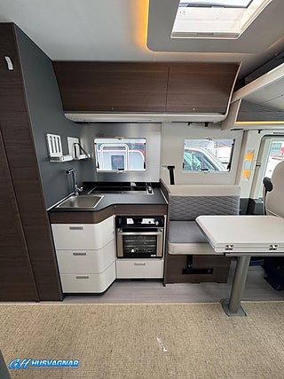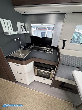 Modellår: 2026, Värmesystem: ALDE - vattenburen centralvärme, Centrallås bil- och bodelsdörrar, ALDE - vattenburen centralvärme, Krocksensor för gasol under färd, Taksäng i hytt - elektrisk, Fönster med mörkläggning/myggnät, Färskvattentank - frysskyddad, Spillvattentank - frysskyddad, Punkteringsset - Fix n Go, Lastluckor - dubbla till garage, Lastutrymme - stort garage, Täthetsgaranti - från tillverkare, Vinteranpassad