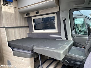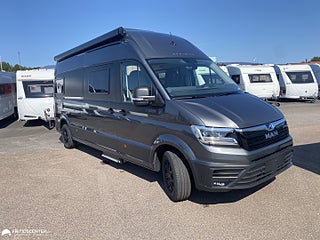 Hjuldrift: Framhjulsdrift, Airbag förare & passagerare, MAN TGE-Chassie Motor: 2, 177 hk Växellåda: 8-växlad automatlåda, Fritidscenter - Trygghetspaket, B körkort totalvikt 3500 kg, Elmanövrerat Fotsteg 70cm, Färskvattentank 110L Isolerad, Gråvattentank 100L Isolerad, Takfönster Toalett med fläkt, LED Daytime Running Light