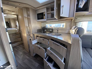 Fritidscenter - Trygghetspaket, Alde Vattenburen centralvärme, Vattenburen Golvvärme förarhytt, Cinderella förbrännings toalett, Elektrisklåsning Arbetsbänk