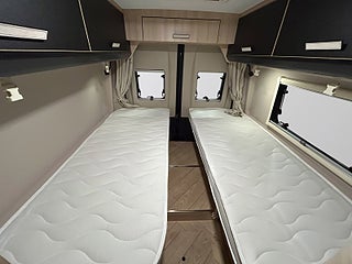 I denna inredda VAN V217 har Challenger lyckats med den svåra utmaningen att etablera två rejäla enkelsängar på bara 6.36 meter.