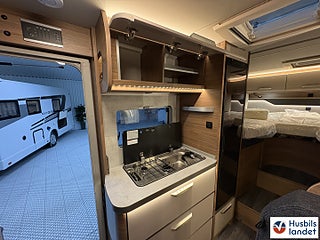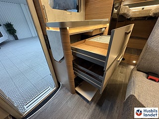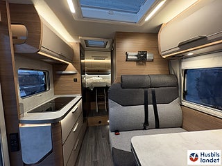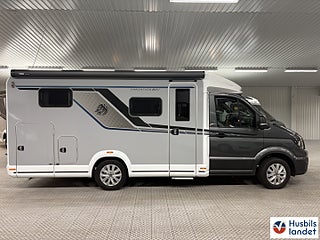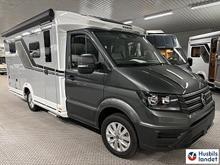 Hjuldrift: Framhjulsdrift, Klädselalterntiv: ACTIVE ROCK, Värmesytem:Truma luftburen värme, 163hk 8-växlad automat 2-kanals luftfjädring för bakaxeln med kompressor för att förbättra körkomforten och reglera fordonshöjden 17" aluminium fälgar "Lismore, Luftkonditionering "Climatic" manuell, Multifunktionsratt i läder, Fram- och sidofönster med REMIfront V "Blackout System" mörkläggningsgardin isolerglas, Farthållare inklusive hastighetsb, egränsning och "Intelligent Speed ????Assist" ESP, Hill Holder (hill start aid) ABS, Elektronisk startspärr Elektronisk parkeringsbroms med auto hold-funktion Nödbromsassistent Trafikskyltsigenkänning Distraktion och trötthetsvarnare Start-stop-system med bromsenergiåtervinning Däcktryckssensorer VW Crafter Däcktryckssensorer VW Crafter, Automatiskt helljus "Light Assist" Regn- och ljussensorer Bränsletan 75 liter, Centrallås med nyckellöst startsystem "Keyless Start" Virtuell Cockpit, LED strålkastare med LED-varselljus Navi Plus mediapaket "Discover Pro" 12.9" backkamera, Maximal lastförmåga i det bakre garaget: 250 kg, Elektriskt trappsteg vid entrédörr, dubbla garagedörrar 80X110cm. KNAUS CATEYE-evolution- bakljus med exklusiv nattsignatur och dynamiska blinkers i LED-teknik, Överskåpsluckor med soft-close funktion Isofix system standardsittbänk användbar för 1 barnstol, Konvertering enkelsäng till dubbelsän, Kompressorkylskåp 150 liter (inkl. 17 liters frysfack), Eltillsats för Truma Combi 6 Elektrisk golvvärme, Smart laddare med 25A laddningseffekt Laddningsförstärkare för bodelsbatteri Markis 405 x 250 cm