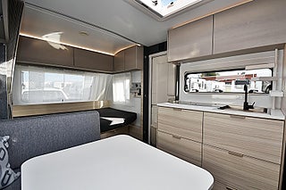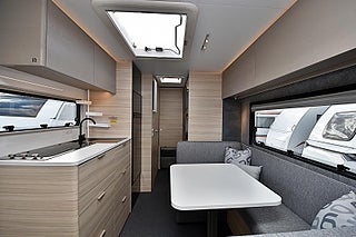 Modellår: 2026, Värmesystem: Truma - luftburen fläktvärme, Silverfärgad glasfiberkaross, Silverfärgat glasfibertak, Dubbelglasat frontfönster, Rullbar spillvattentank 25L, Önskas ytterligare utrustning? Vi löser det mesta!