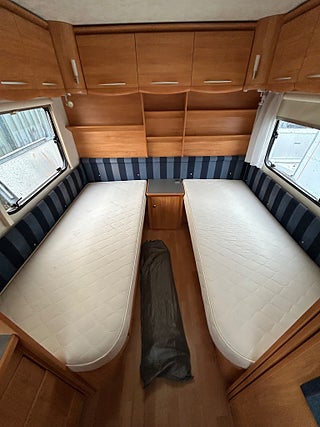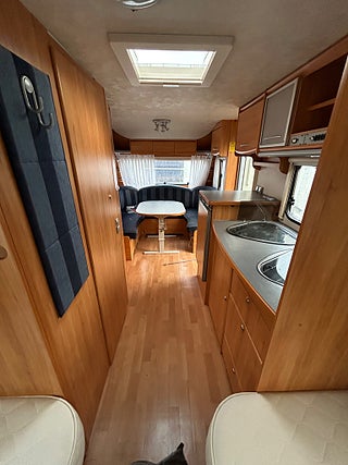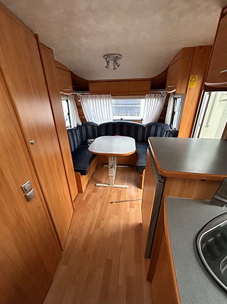Vagnen levereras varudeklarerad med bl.a. fuktmätning, gasoltryckning samt 6 månaders garanti med start från 15 mars 2026.