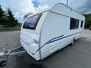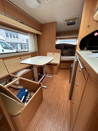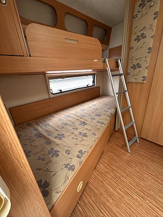 En fin familjevagn med plats för hela familjen. direkt när man kommer in möta man av en barnkammare med en stor våningssäng, en härlig u-soffa som är bäddbar till en dubbelsäng, en stor dubbelsäng i fram.