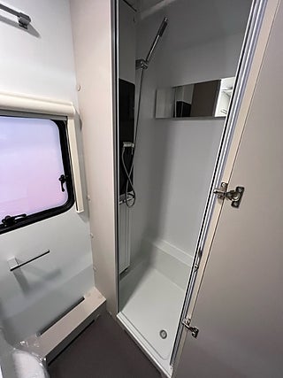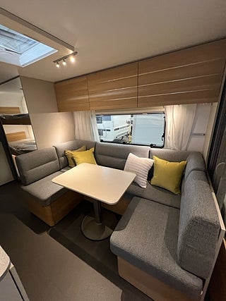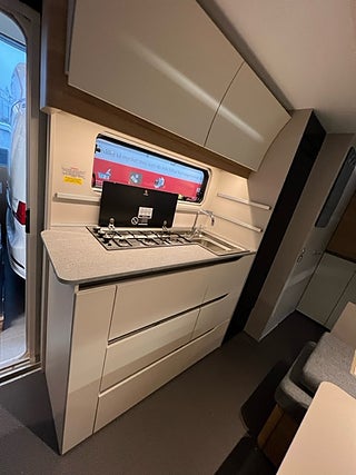 Reglerbar färskvattentank 20/50 l, Täckskiva för diskho/ skärbräda Diskställ, Extra spotlights vid sittgruppen Takbelysning, Ställbar huvudända på dubbelsäng Kallskum