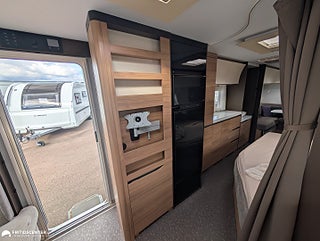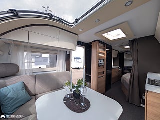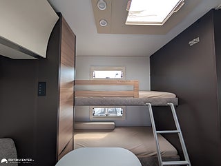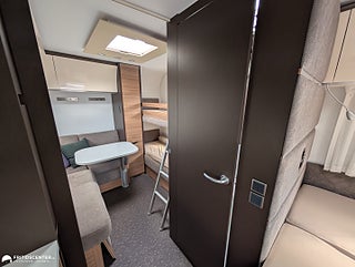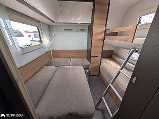 Adria Alpina 763 UK är en rymlig och välplanerad familjevagn som gör det enkelt att resa bekvämt året runt. Barnkammaren bak med våningssängar och egen sittdel ger en egen zon för barnen. Den centrala dubbelsängen skapar balans mellan privatliv och gemensamma ytor. I fronten finns en stor soffgrupp som bjuder in till både måltider och umgänge. Köket är utrustat med mikro och ugn bra arbetsytor samt rymlig kyl och frys för smidig vardag. Alde vattenburen värme tillsammans med vinteranpassning ger trygg funktion i alla klimat. En genomarbetad helhet som ger ett bekvämt och praktiskt resande., Välkommen in till Fritidscenter Göteborg.