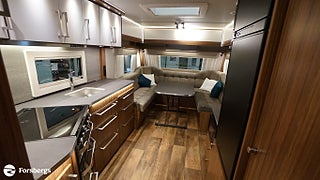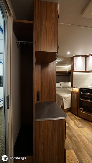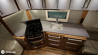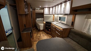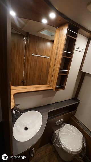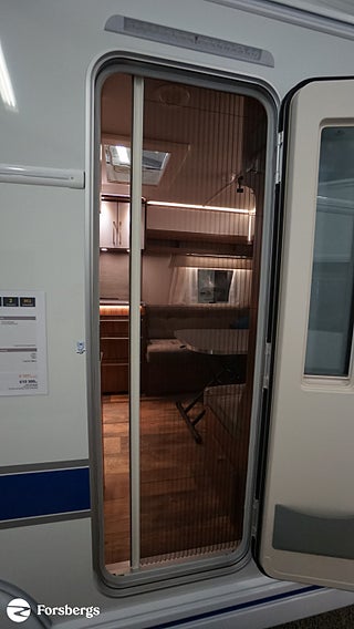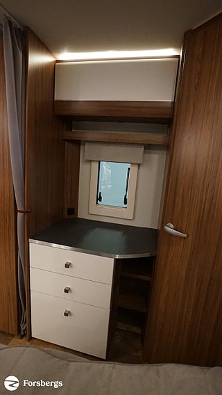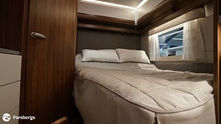 Klädsel: Golv: Antik planka, Dubbelbädd Franskbädd / Kompakt badrum, Stort fönster vid köksbänk, Luckor kök överdel vit/ nederdel träfärgad, 230 V-uttag vid sänggavel, 2 st Sängbelysning med USB-uttag, Vridbar elektrisk kassettoalett, Centralvärmepanna växlar automatiskt mellan el & gasol, Cirkulationspump 12 V ställbar, Möjligt att reglera golvvärme/element, Alde vattenburen golvvärme, Nivåmätare avloppstank & färskvatten, Midi heki taklucka 500x700 fram, Lastlucka bak inkl belysning, LED-belysning lastlucka & gasolkoffert, Nyhet! Automatiskt uppvärmt avlopp 230 V, Mellantonade fönster med slät utsida, 2 st Överkast till C-säng, 2 st Förvaringsfickor i tyg till C-säng, Extra eluttag vid sittgrupp