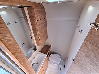 Strömförsörjning 12 V bestående av:automatisk laddare huvudströmbrytare och indikator för färskvattennivå