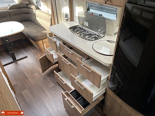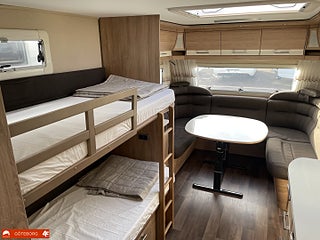 Bordsstativ - höj och sänkbart, Vinterisolerad avloppstank, Upptäck familjeglädjen med Kabe Classic 630 GXL KS en perfekt barnkammarvagn från 2018! Denna rymliga husvagn är designad för att ge hela familjen komfort och bekvämlighet på resan. Med en härlig soffgrupp fram kan ni njuta av gemenskap och avkoppling. Våningssängen erbjuder ett mysigt sovutrymme för barnen medan köket i mitten gör matlagningen enkel och trevlig. Bak i vagnen hittar ni en bekväm dubbelbädd samt en praktisk toalett och dusch. Dessutom är husvagnen utrustad med AC för varma sommardagar. Varmt välkommen in till oss på Fritidscenter för en närmare titt på denna fina husvagn!