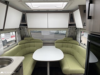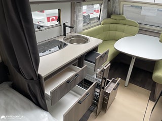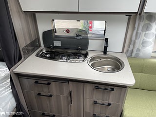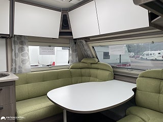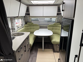 Vinterisolerad avloppstank, Klädsel Appleton Grön klädsel, Estate 470 XL möter dina behov med komfort teknik och design i perfekt balans. Varm på vintern sval på sommaren tack vare Kabe:s välisolerade kaross och vattenburen centralvärme. Sittgruppen bjuder in till umgänge köket är komplett för matlagning och den trevliga sängen ger god nattsömn efter en dag i naturen. Varmt välkommen in till oss på Fritidscenter i Göteborg för att se den här nya husvagn.