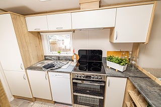 Westcoast 32 är isolerad för året-runt bruk och levereras helt komplett med möbler, lampor - ja allt! En Panasonic luftvärmepump håller dig varm under årets kalla dagar och sval under de varma dagarna.