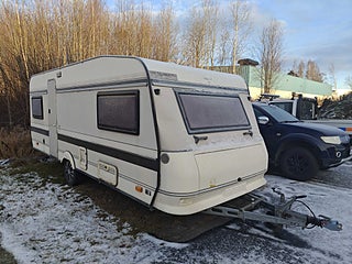 Husvagnen har en buckla i framkant vänster om framrutan där den varit i närkontakt med en vägbom som hann gå ner innan husvagnen passerat. även positionsljuset har tagit skada vid detta tillfälle. Inga djupare tester som fukttest eller funktionstest är utförd på husvagnen, men enligt uppgift har alla funktioner tidigare fungerar.