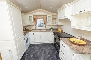 Begagnade Kingswood är inte bara exklusiv och unik, den är också väldigt komplett och praktisk i sin planlösning och specifikation. Här har man verkligen allt för ett bekvämt och ombonat boende, för fritid eller året-runt!