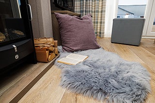 Det ljusa vardagsrummet erbjuder en hemtrevlig atmosfär med noggrant utvalda textilier. De djupa, bekväma sofforna ger en optimal sittupplevelse, och stora fönster släpper in rikligt med ljus. Kaminens sken bidrar till en varm känsla, och det finns plats för TV intill. Soffbordet har praktisk förvaring och dubbeldörrar leder ut och släpper in frisk luft.