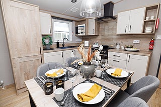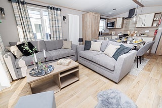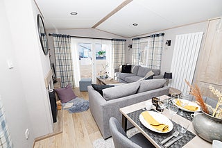 Nya Beverley 2026 har fått en uppfräschad, mörkare exteriör. Detta är en fabriksny villavagn med en öppen och luftig planlösning mellan kök, fördelat på 11.94 x 3.68 meter med två sovrum.