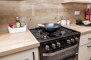 Den öppna planlösningen mot matplats och kök skapar en social och inbjudande miljö. Köket är välutrustat med kyl, mikrovågsugn samt gott om förvaring. Alla luckor och lådor har mjukstängning och arbetsytorna är generösa.