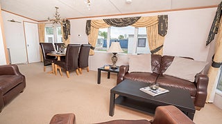 Stig in i denna vagn och låt dig mötas av en underbar, öppen atmosfär mellan matplatsen och vardagsrummet. Vardagsrummet inbjuder till avkoppling med bekväma skinnsoffor och en värmande elkamin som skapar en mysig atmosfär. De dubbla dörrarna längs kortsidan släpper in härligt naturligt ljus som lyser upp hela rummet. Matplatsen är elegant med ett bord och fyra skinnklädda stolar som harmonierar perfekt med vardagsrumsmöblerna.