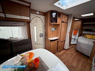 Modellår: 2014, Värmesystem: ALDE - vattenburen centralvärme, ALDE - vattenburen centralvärme, Gasoluttag i koffert med snabbfäste, Stort kylskåp med separat frys, Eluttag för TV-antenn/12V/230V - utvändigt, Färskvattentank - frysskyddad, Spillvattentank - frysskyddad, Fönster med mörkläggning/myggnät, Solcell