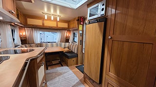 Alde vattenburen värme + Golvvärme (el). Köksfläkt. Heiki lucka. Stort kyl. Micro. Säkerhets drag. Stalldörr med myggnät. Markis och 2år gammalt luft tält medföljer.