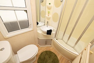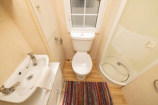 Badrum två hittar vi en wc, handfat och en duschkabin.