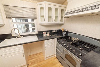I köket har vi en stor gasspis med ugn, plats för en diskmaskin om man så önskar.